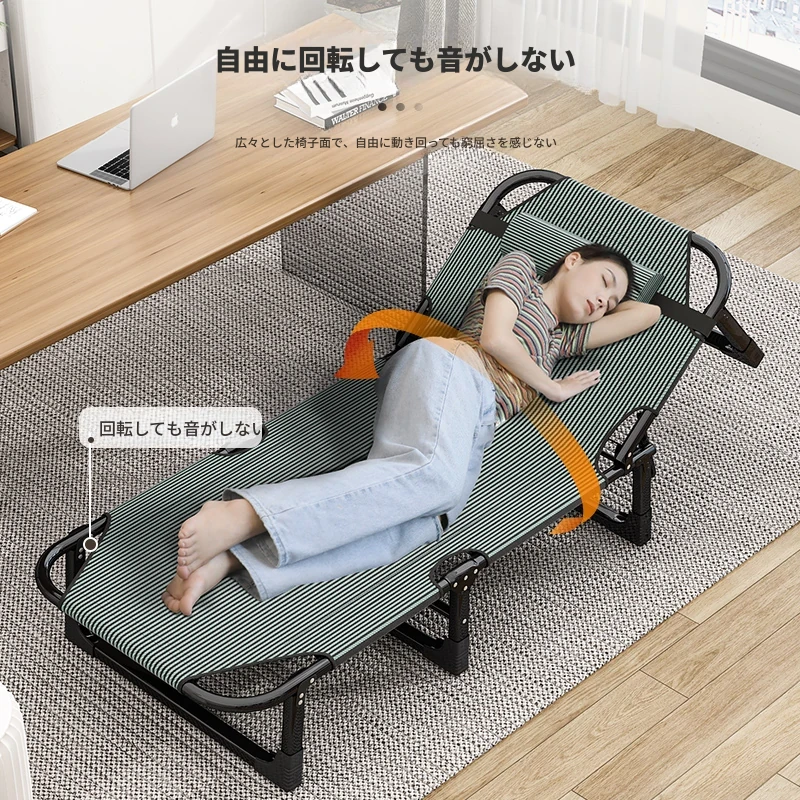 リクライニングチェア 昼寝用折りたたみベッド オフィスでの昼寝に最適!背もたれ付きで、家庭用やバルコニーでのリラックスタイムにもぴったり。夏のビーチにも持ち運べる便利なポータブルチェア!