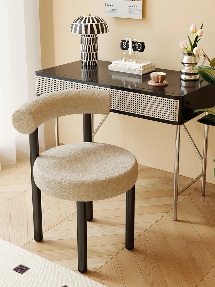 Minimalist Makeup Vanity Stool for Bedroom - Creamy Aesthetic Dressing Chair with Backrest, Trendy Ins Style, Perfect for Girls' Makeup Tables