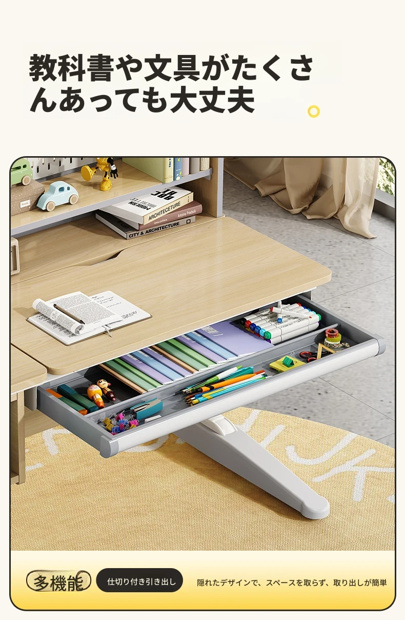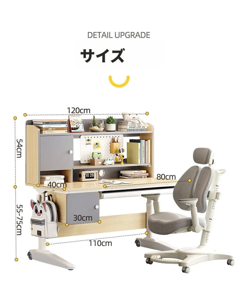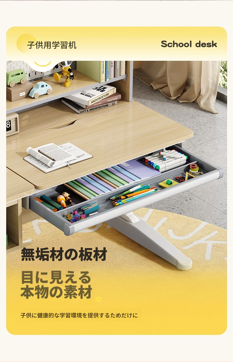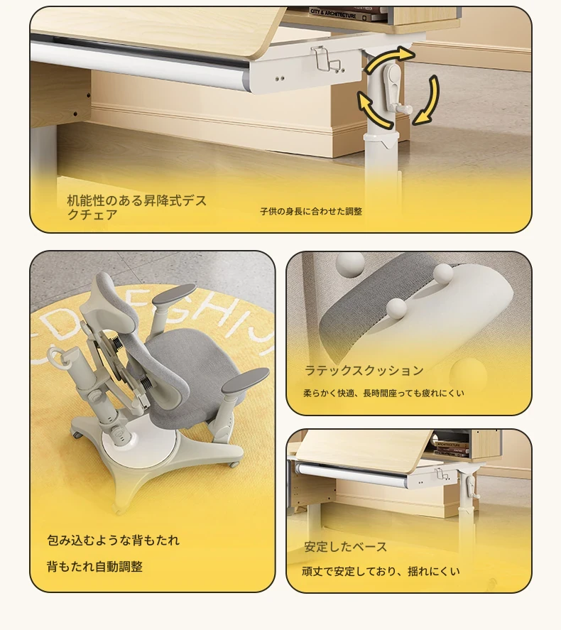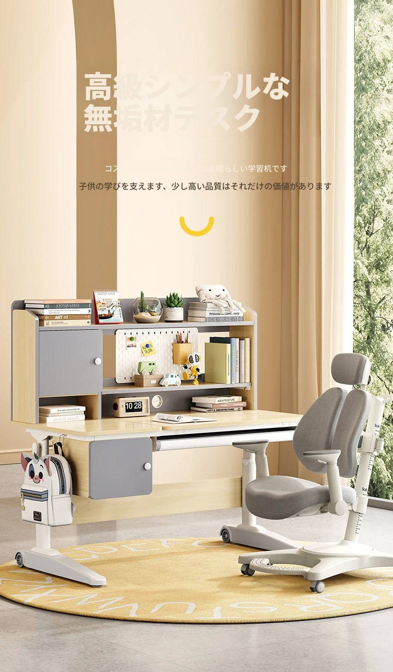 子供用学習デスク|小学生向け昇降式書き物デスク&チェアセット|自宅で使えるシンプルな無垢材デスク|おしゃれで機能的な寝室専用!快適な学びの空間を実現!