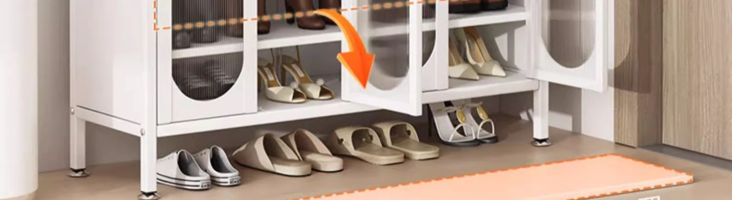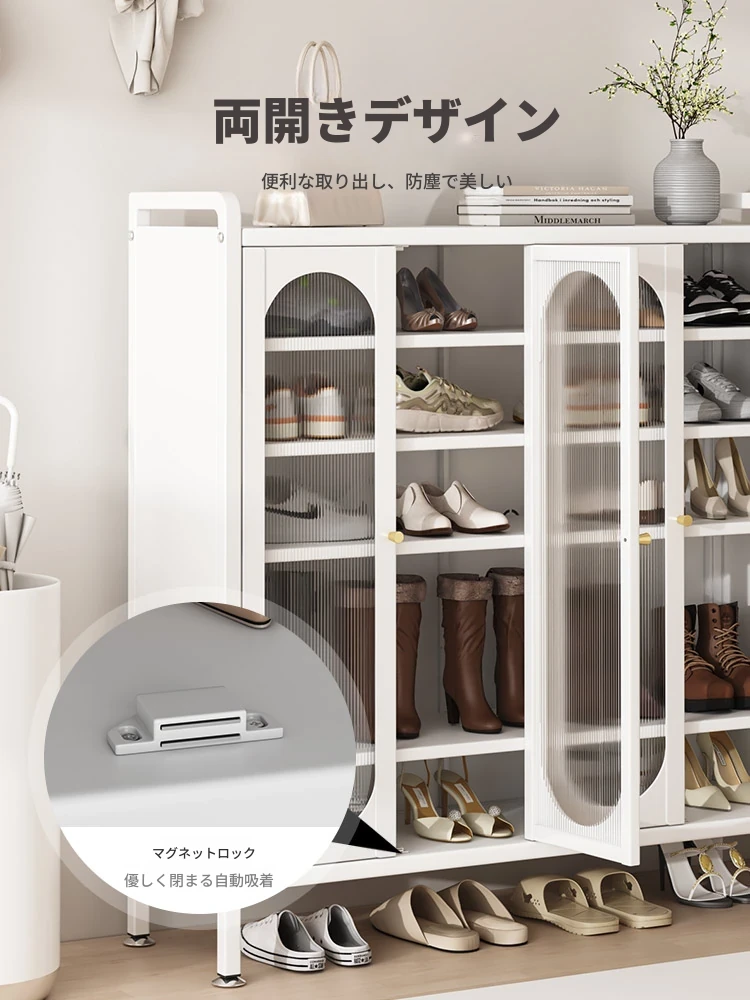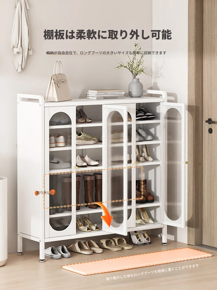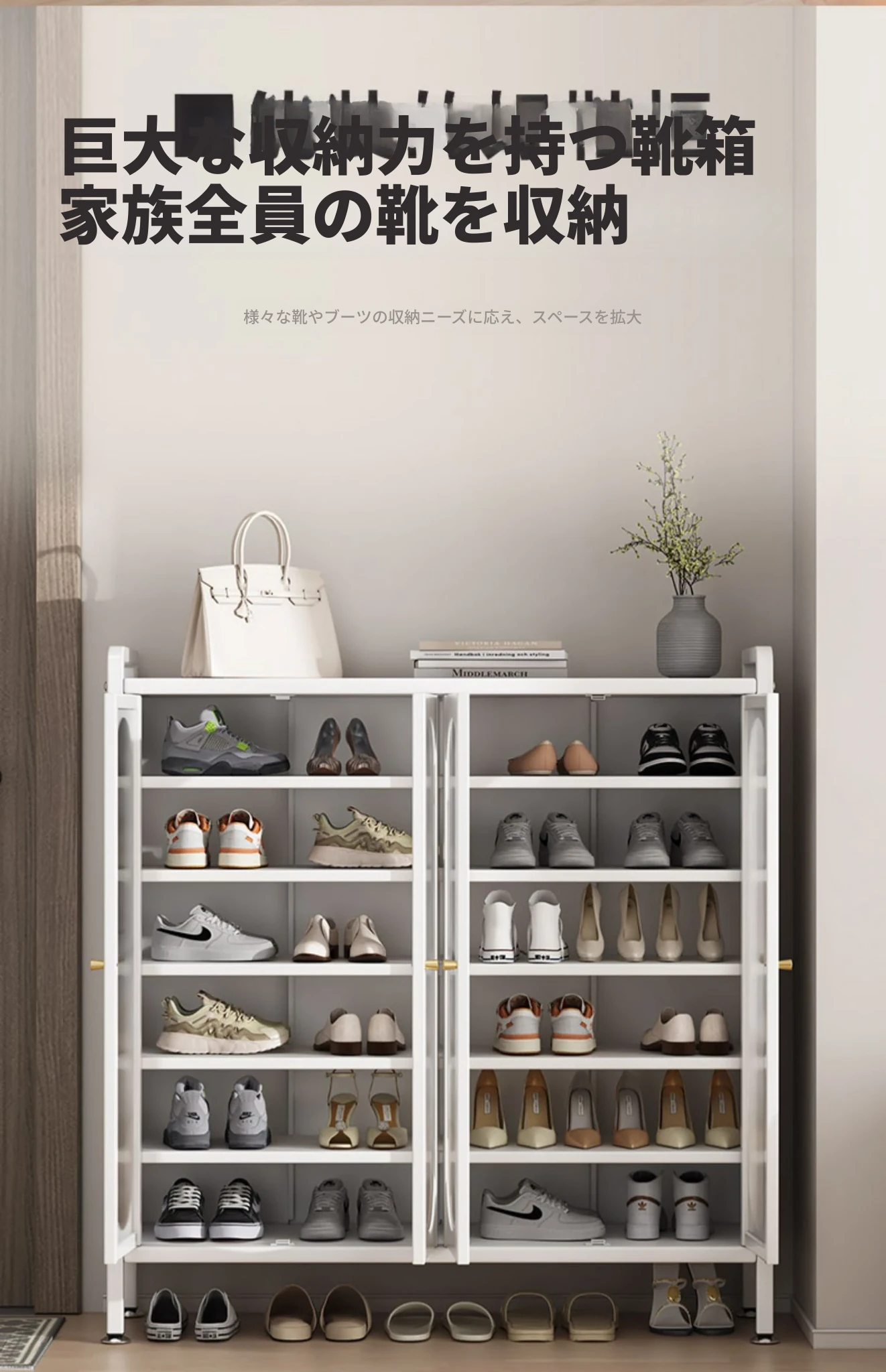 モダンでシンプルな鋼製シューズキャビネット|多層収納、ほこりから守る玄関用|家族の靴をスッキリ整理!入室もスマートに演出する便利なシューズラックです。