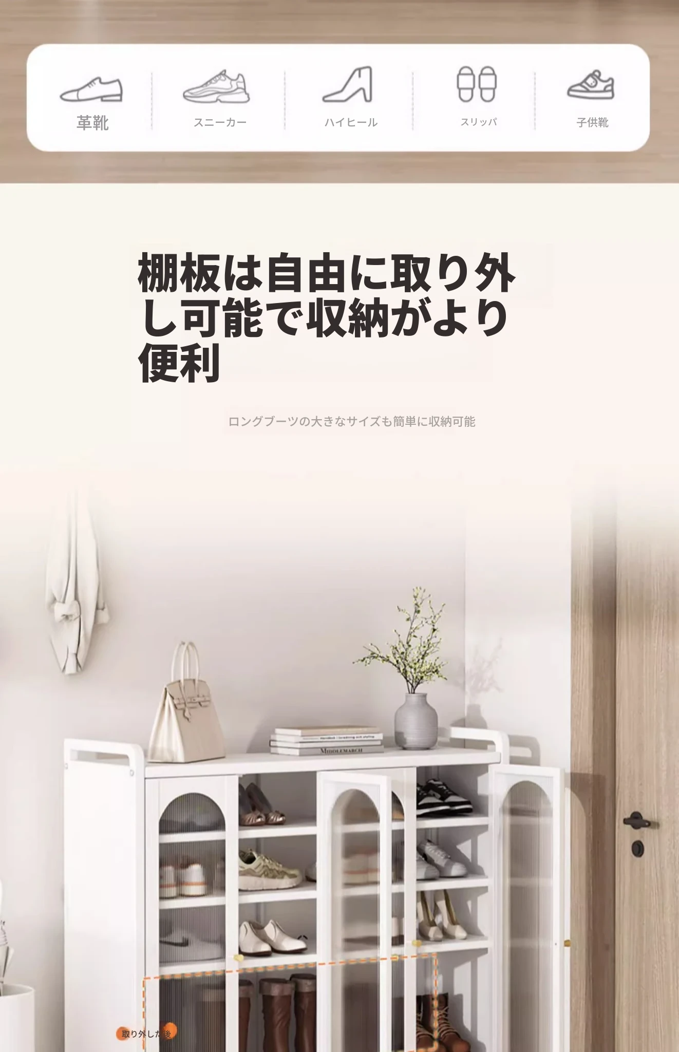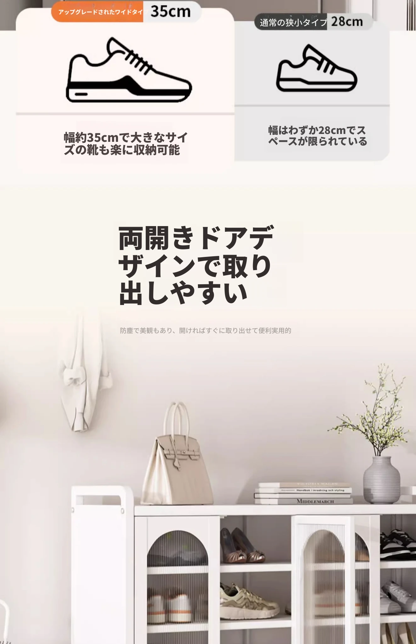 4つのフックをプレゼント【四重扉7+1層】約28-40足の靴を収納可能
