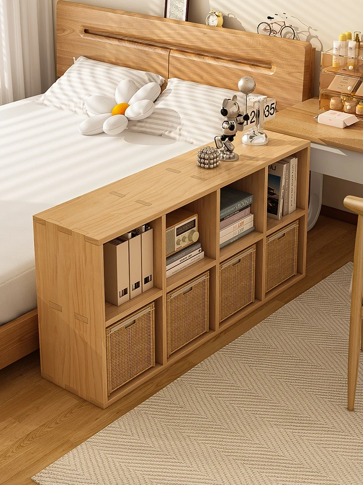 天然木材使用のスタイリッシュなローベース本棚!リビングや寝室、子供部屋にもぴったり。壁にぴったり寄せて収納できる、魅力的な格子デザインの収納キャビネット。おしゃれで機能的なアイテムで、あなたの空間を美しく演出します!