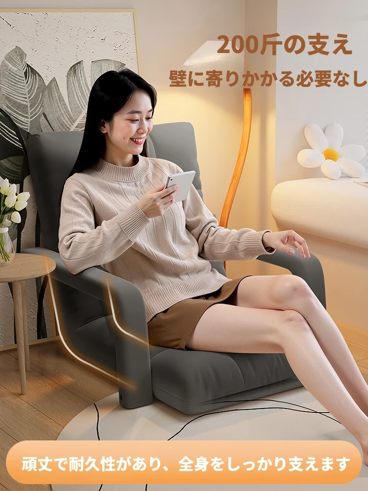 リラックスできる懶人ソファ!寝室や畳、窓際にぴったりの座椅子。ベッドでの背もたれとしても使え、折りたたみ可能な一人用小型ソファで、快適な眠りをサポートします!